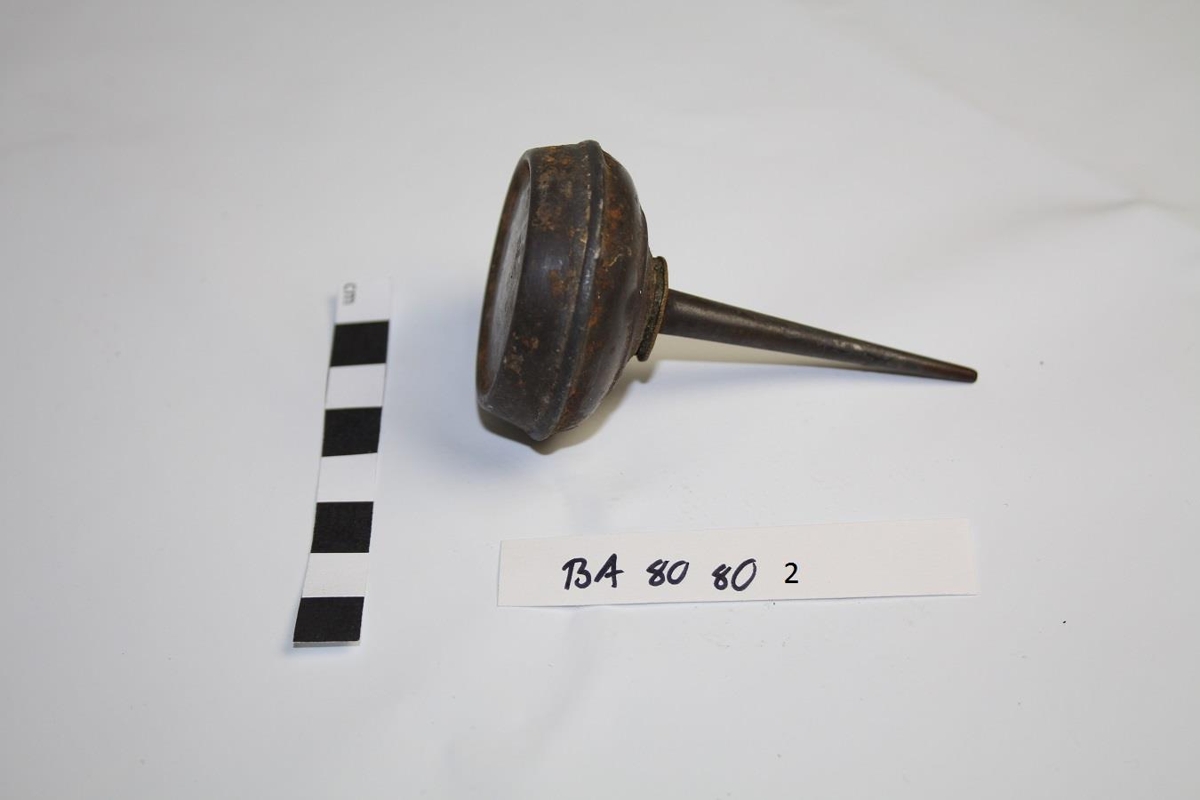 Spóla sem tilheyrði hringprjónavél (gripur BA-80-80). Er úr búi Sigrúnar Wium og Snjólaugar Jónsdóttur sem bjuggu í húsi sem kallað var Draumaland á Höfn áður en götunöfn og númer tóku gildi. Þetta fólk fluttist úr Suðursveit á Höfn um eða rétt eftir 1930. Þessi gripur er einn af fylgihlutum hringprjónavélar.