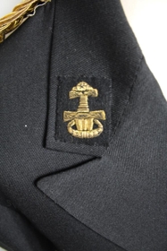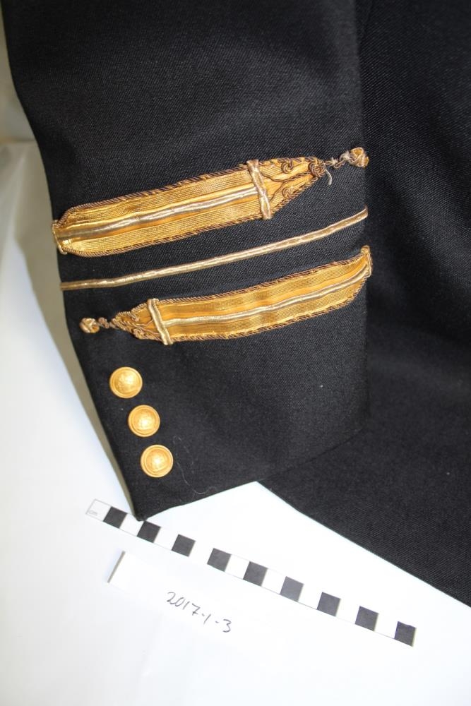 Jakki frá sýslumanni. Jakkinn er úr klæðisefni, fóðraður, tvíhnepptur með hefbundnum kraga, tveimur hliðarvösum og einum brjóstvasa. Einnig er brjóstvasi innan á jakkanum. Á jakkanum eru tvær raðir gylltra einkennishnappa, 2,4 sm í þvermál með skjaldamerki Íslands, fjórir í hverri röð og er jakkinn hnepptur á þrjá þeirra. Á ermunum eru gylltir einkennishnappar 1,6 sm í þvermál með skjaldarmerki Íslands, þrír á hvorri ermi. Í kragahornum jakkans er útsaumað merki sýslumanna.
