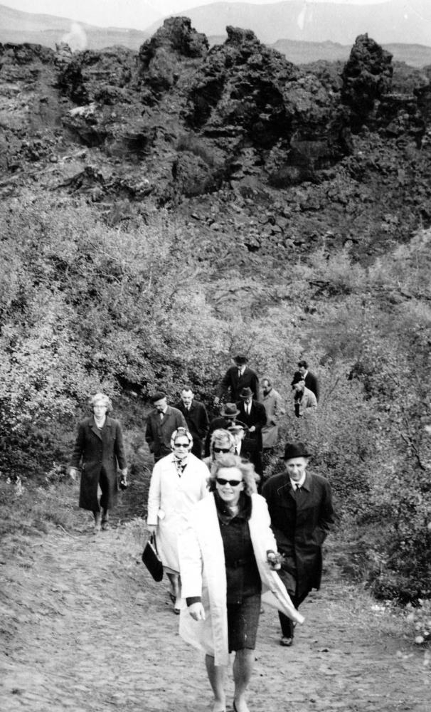 Eiginkona norks forstjóra fremst, og Magnús Jónsson fjármálaráðherra t.h.