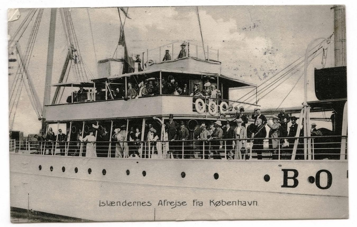 „„Islænderne" eru íslensku Alþingismennirnir, sem fóru í heimsókn til Danmerkur 1906. Skipið er Botnia. Myndin er tekin við brottför frá Kaupmannahöfn 30 júlí. Auk þingmannanna var aðeins einn annar farþegi með skipinu.“ (BÞ 2017)