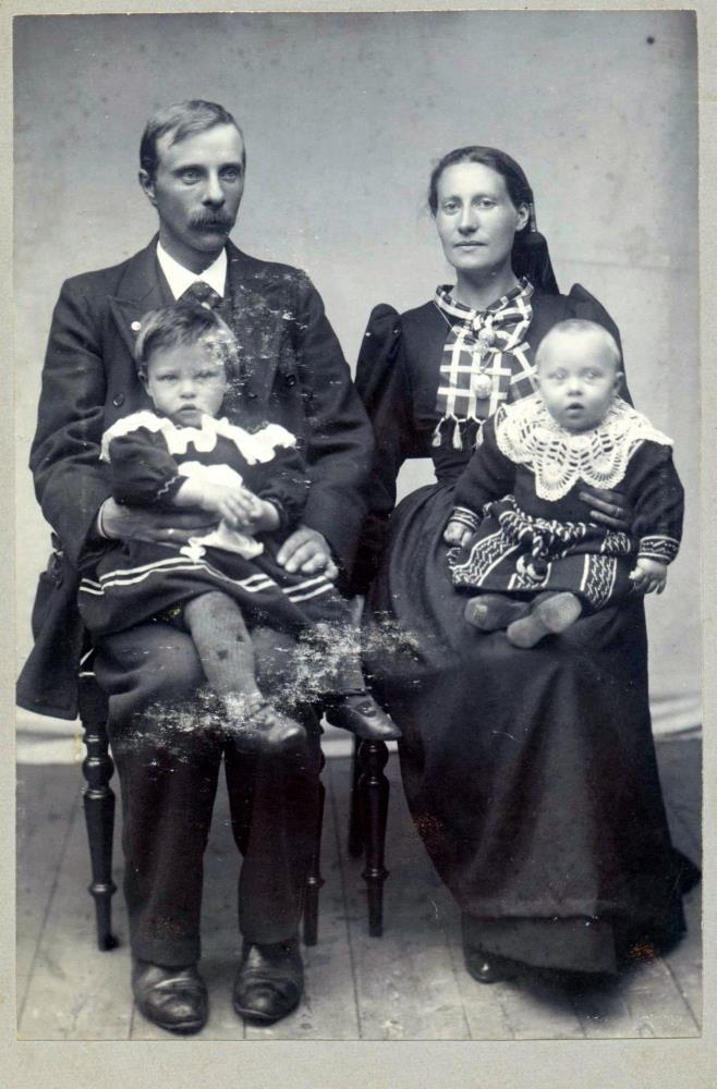 Bjarni Pétursson og Margrét Egilsdóttir með börnum sínum, Ólínu og Ásgeir.