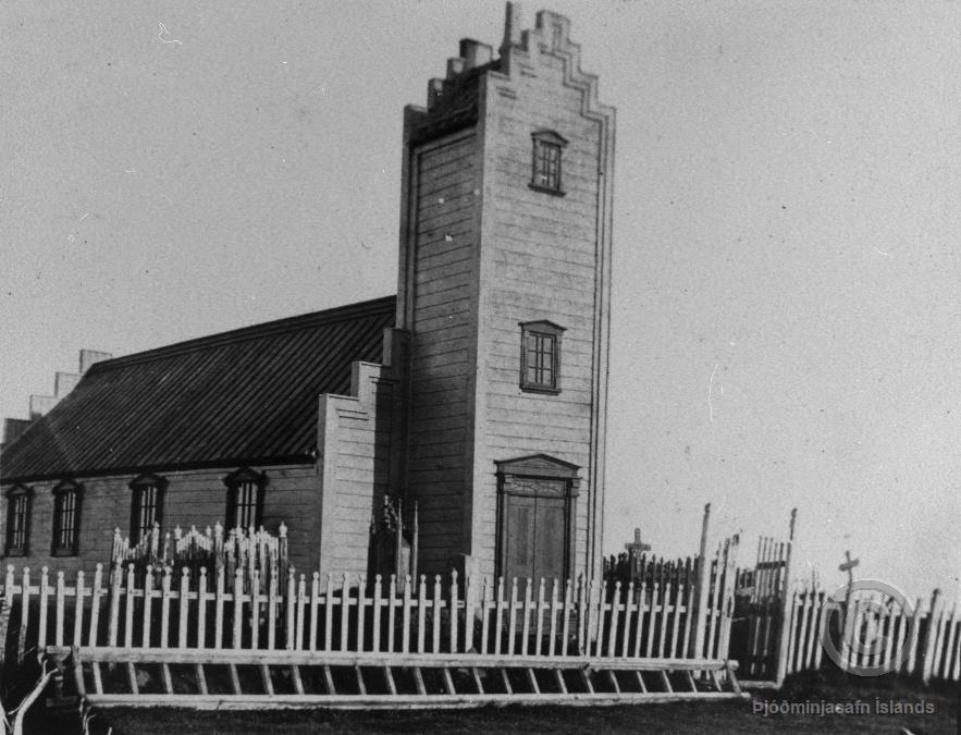 Myndefni: Kirkja, byggingin, innanmynd og ytra útlit