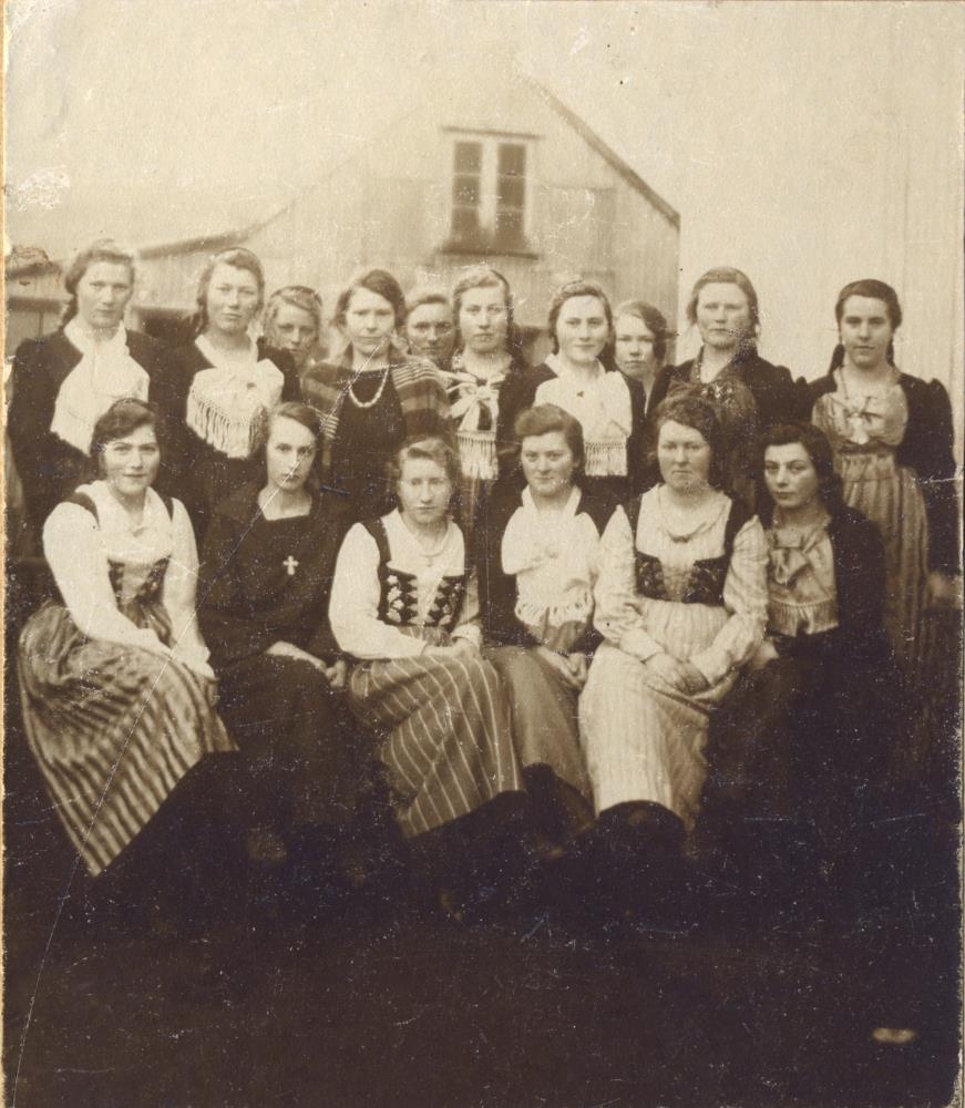 Aftari röð frá vinstri: Vilborg Guðbrandsdóttir, Loftsölum, f.31.10. 1903. Guðbjörg Ingvarsdóttir, Klömbrum. Anna Sveinsdóttir, Vík, f.9.12. 1905. Margrét Lafransdóttir, kennari, Vík, f.14.7. 1883. Sigurbjörg Bjarnadóttir, Norður-Hvoli, f.20.3. 1903. Ingveldur Jónsdóttir, Sólheimahjáleigu, f.12.2. 1905. Sigurbjörg Pálsdóttir, Skammadal, f.6.7. 1907. Þorgerður Hallgrímsdóttir, Felli, f.19.6. 1906. Gyðríður Sveinsdóttir, Norður-Fossi, f.13.4. 1906. Þórey Sverrisdóttir, Vík, f.4.12. 1903.