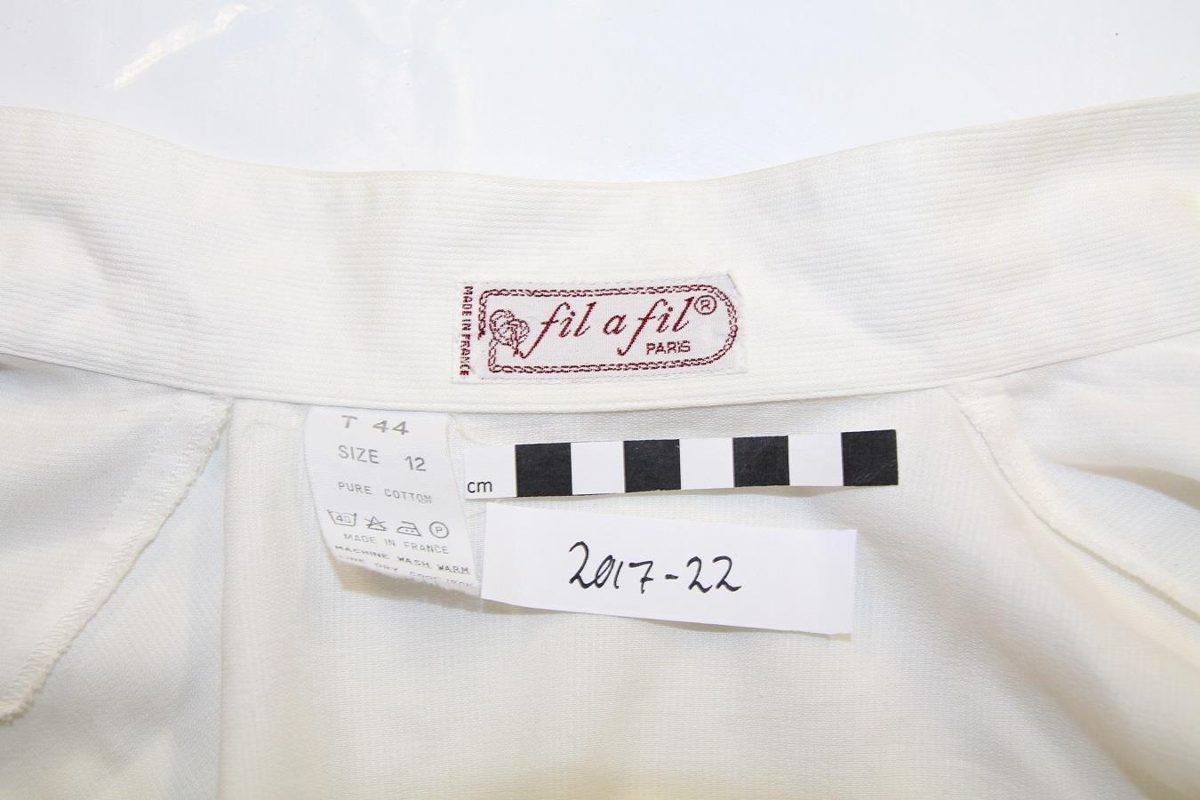 Mögulega er þetta skyrtan sem um ræðir í bréfinu, en hún er þó ekki saumuð af Önnu, heldur virðist vera keypt en hún er merkt 'fil a fil ® Paris'