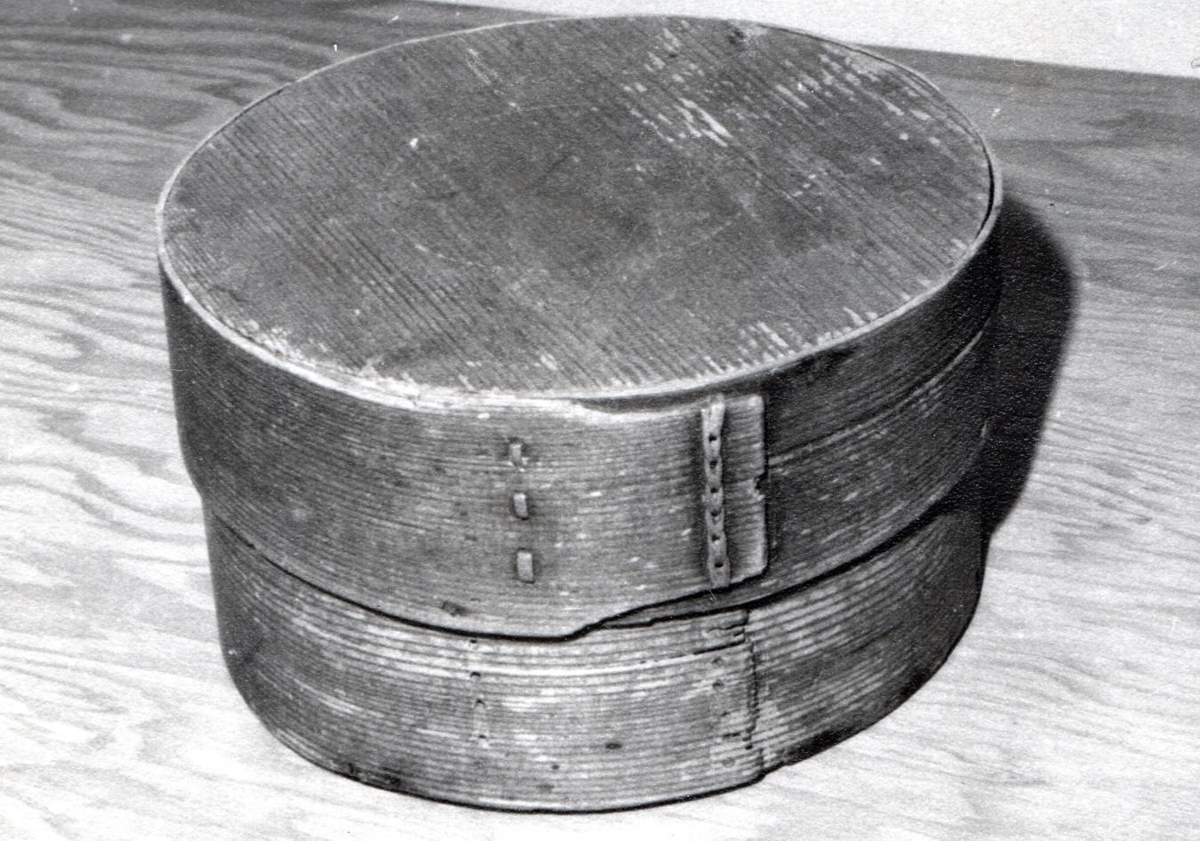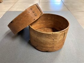 Smjöraskja með loki, úr búi Halldóru Guðmundsdóttur og Jörundar Hákonarsonar í Birnhöfða. Dóttir þeirra Sesselja gaf H.Ó.