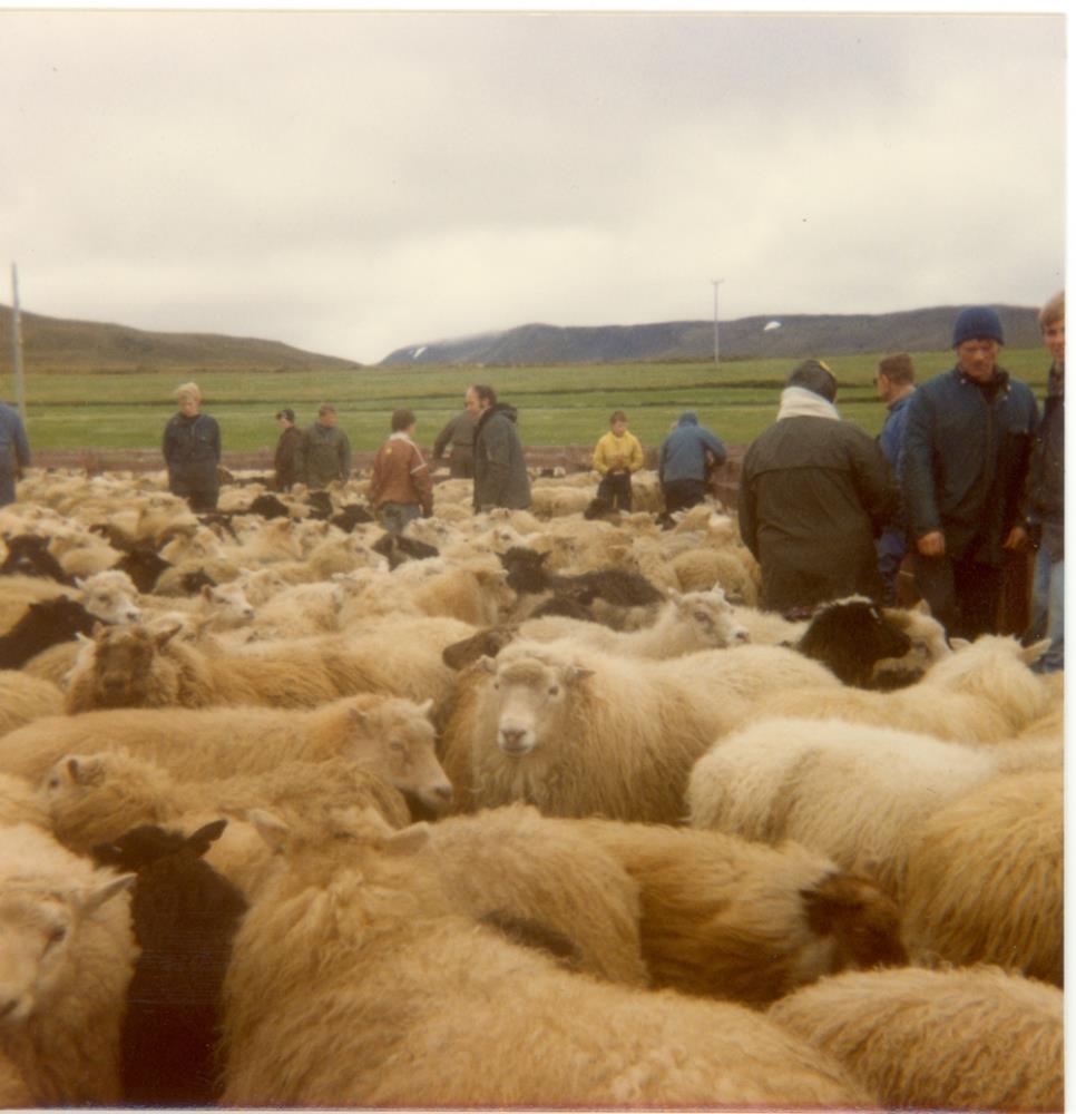 Myndir teknar í Kirkjubólsrétt. Á myndinni þekkjast frá vinstri Reynir Björnsson, Stefán Daníelsson, Hrólfur Guðjónsson og Karl Þór Björnsson.