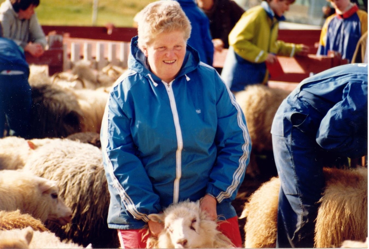 Myndir teknar í Kirkjubólsrétt. Elínborg Oddsdóttir dregur lamb í réttinni.