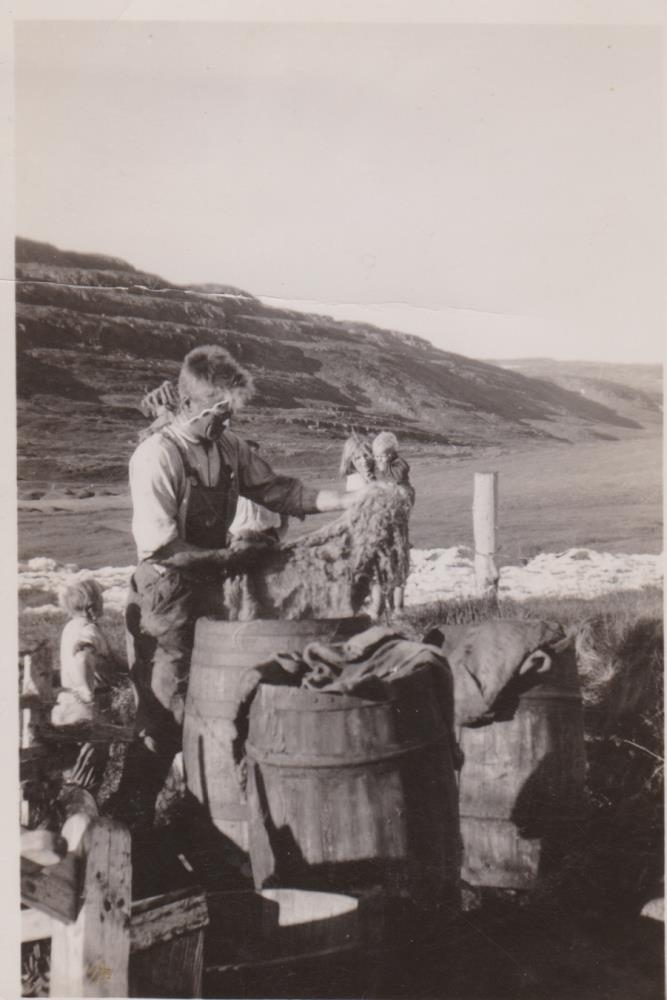 Ingimundur Ingimundarson á Svanshóli við ullarþvott.