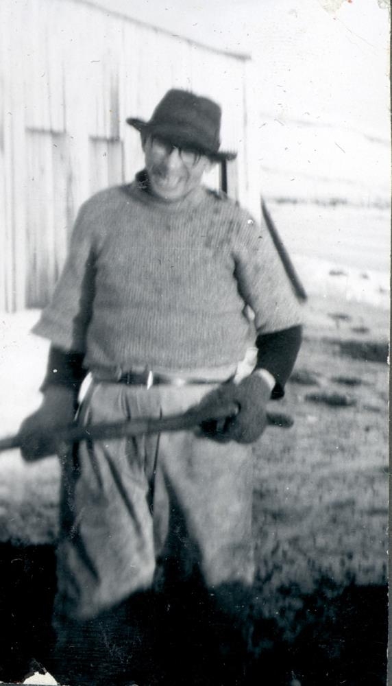 Magnús Einarsson bóndi í Hvítarhlíð í Bitru mokar úr fjárhúsunum.