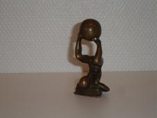 í u.þ.b. 90 gráðum. Stór hnöttur (bolti) liggur á iljum styttunar. Styttan
