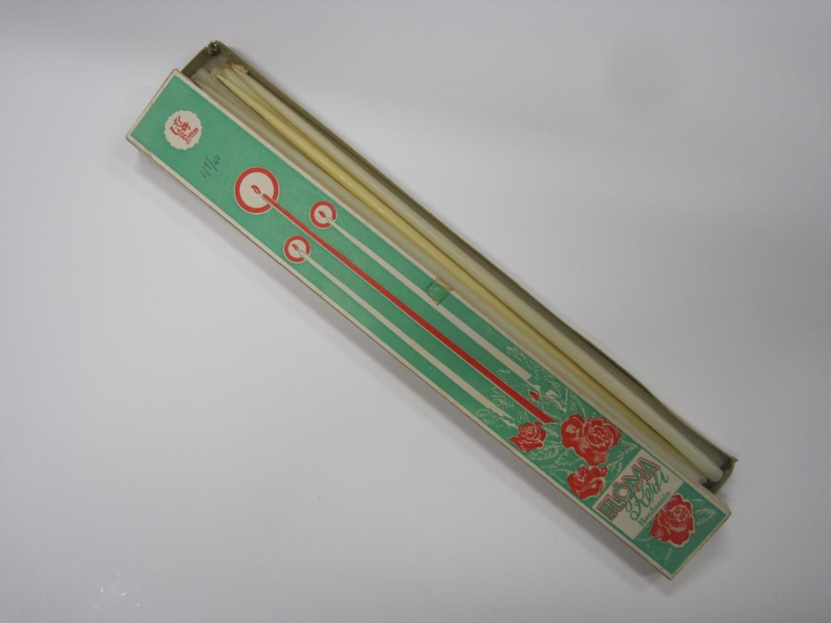 Kertapakki með 10 mjóum hvítum kertum. Á pakkanum stendur: Blómakerti handunnin. Hf. Hreinn".