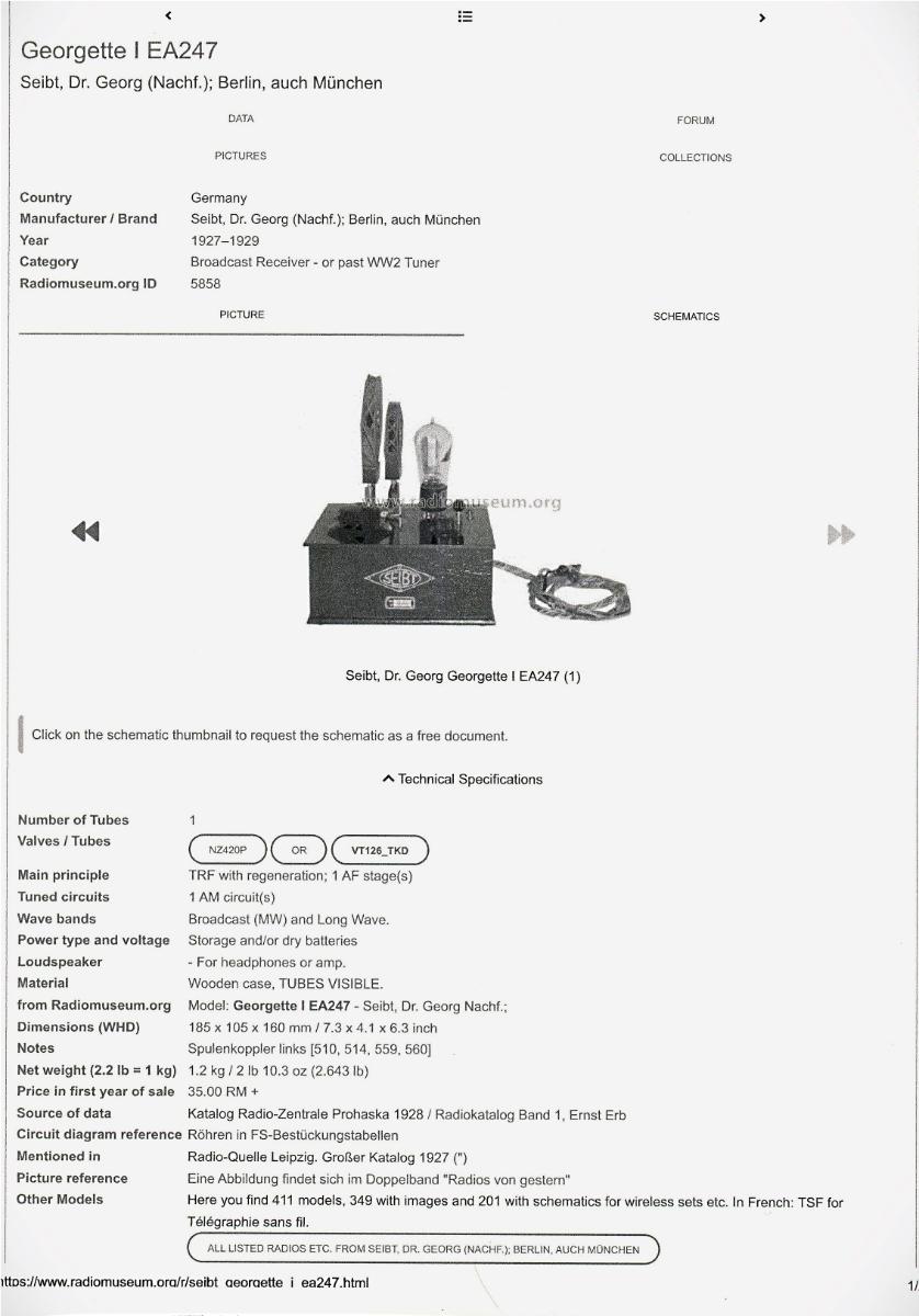 Georgette I EA 247 útvarp kemur með þeim fyrstu landsins árið ca 1927.