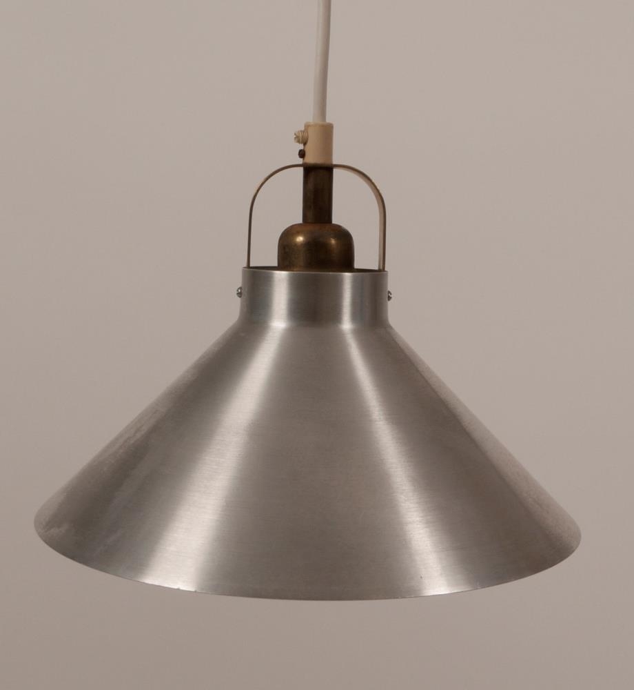 Loftljós úr áli með messing snúrufestingum. Ljósin voru keypt í Rafbúðinni Domus medica v. Egilsgötu í Rvk um 1980.