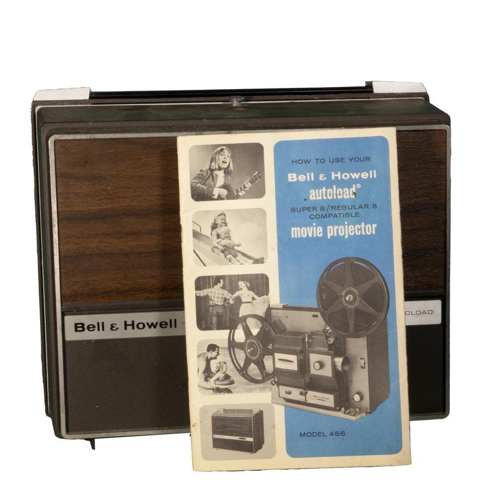 Kvikmyndasýningavél BELL & HOWELL 8 mm model 456 í brúnni áltösku og bæklingur fylgir með.
