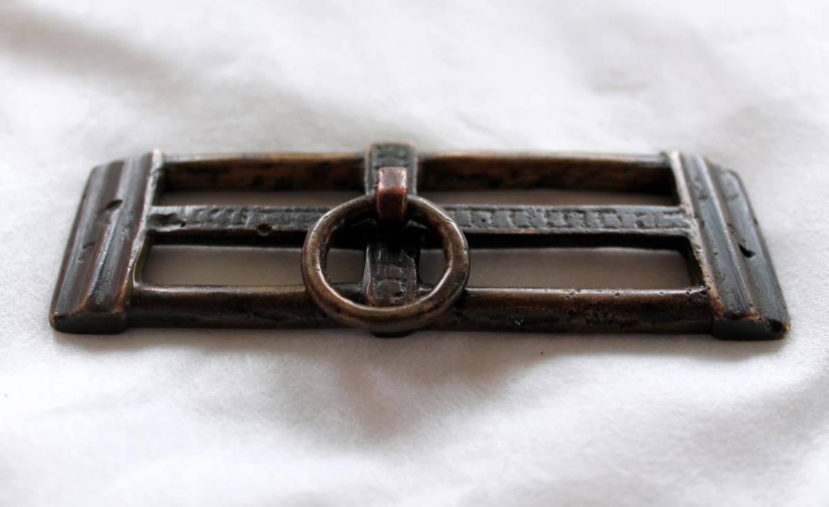 Þófahringja frá Jóhanni Sigurðssyni (f. 1925), Kálfalæk. Hringja þessi er líklega komin frá Jónasi Kristjánssyni (1895 - 1964), kaupmanni og bílstjóra í Borgarnesi.
