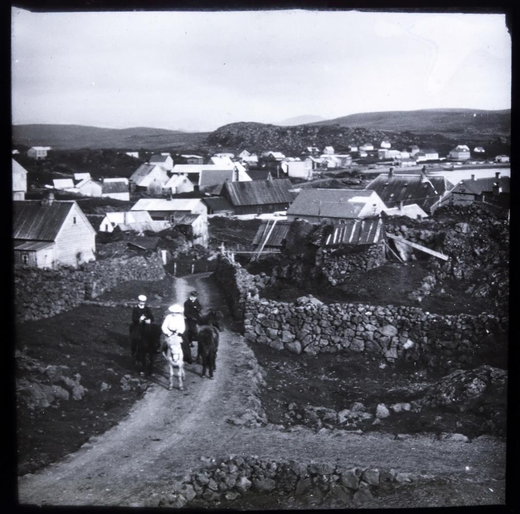 „Kæmi mér ekki á óvart að þetta sé Kirkjuvegur í Hafnarfirði og Hamarinn í fjarska. Húsið vinstra megin er líklega Kirkjuvegur 6, en það er samt sagt að það sé byggt 1910... og myndin frá 1905.“ (GP 2020)