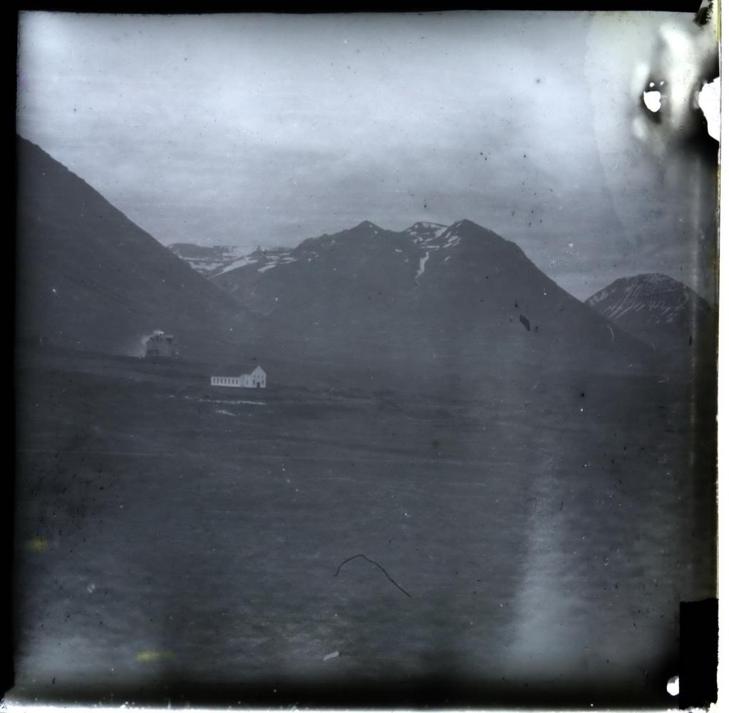 Hólar í Hjaltadal. Hóladómkirkja fremst og skólahús bændaskólans á Hólum fjær.