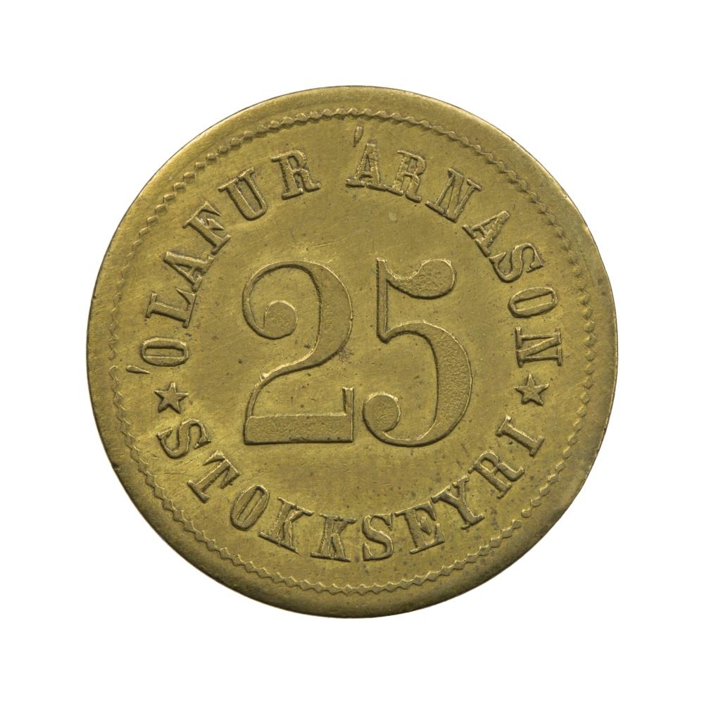 Þessi 10 aura vörupeningur var framleiddur fyrir verslun Ólafs Árnasonar á Stokkseyri. Peningurinn var gjaldgengur í verslun Ólafs frá því um 1900 til ársins 1902. Líkur benda til þess að peningarnir hafi verið sleginn af L. Chr. Lauer í Þýskalandi með milligöngu N. Hansen & Co í Danmörku.