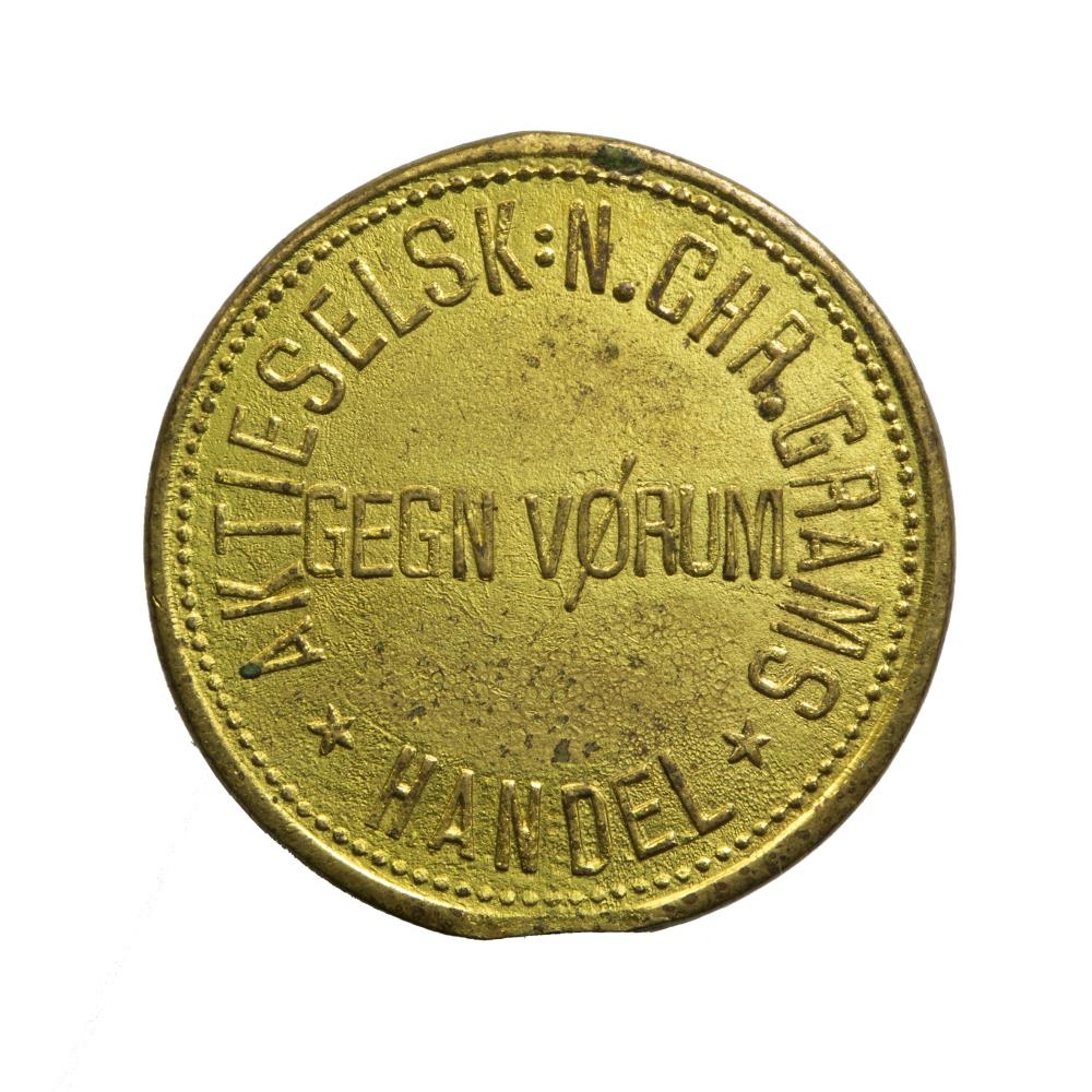 Þessi 10 aura vörupeningur var framleiddur fyrir verslun Niels Christian Grams á Þingeyri. Mjög ólíklegt er að Grams-peningarnir hafi nokkru sinni farið í umferð, heldur verið endursendir til bræðslu hjá framleiðandanum í Þýskalandi. Aðeins eitt eintak af peningum Niels hefur fundist hér á landi. Önnur eintök hafa fundist í Danmörku.