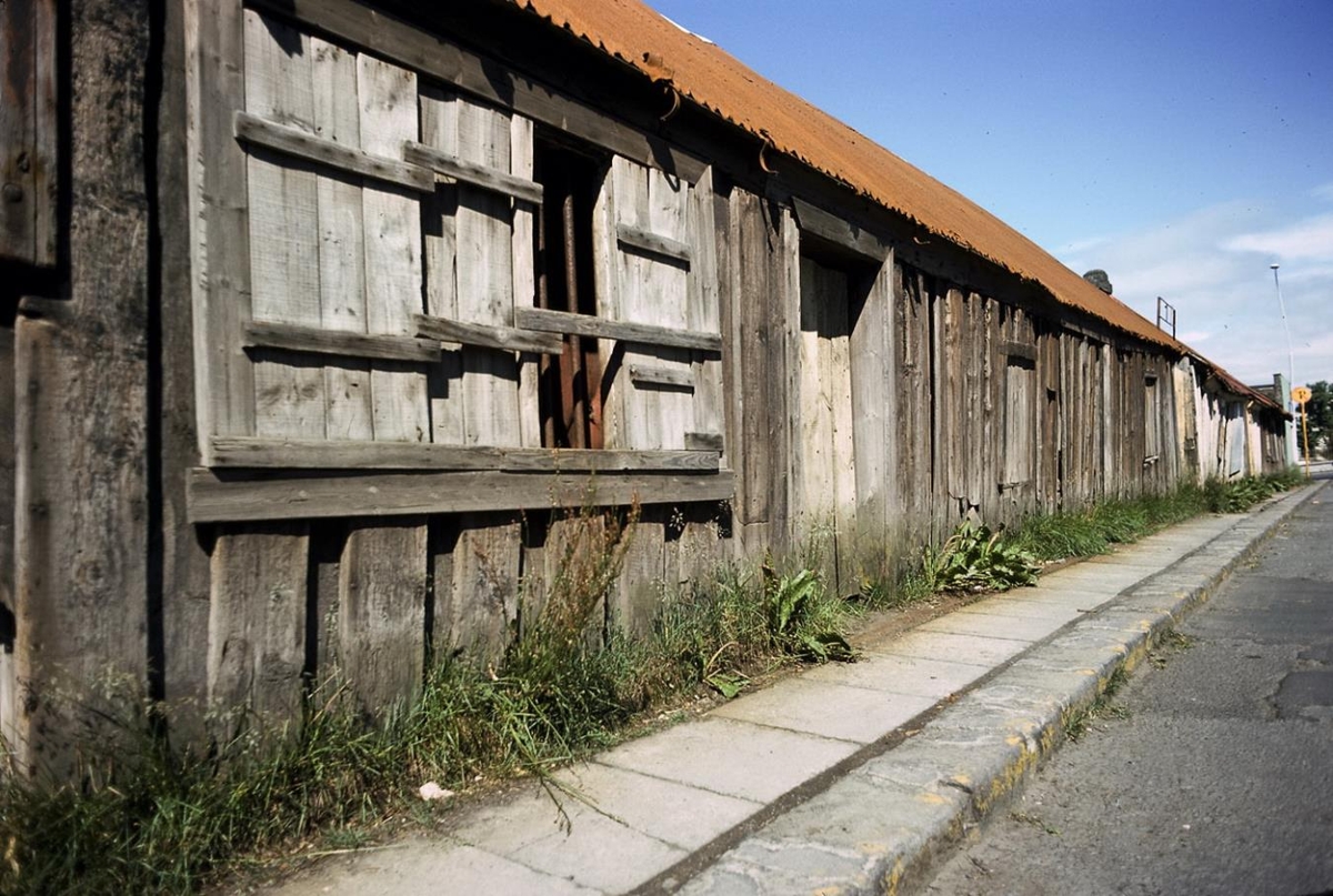 Skólastræti. Húsaröð og neglt fyrir glugga.