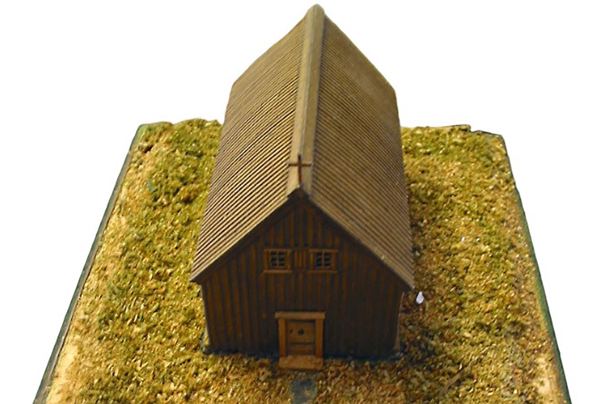 Líkan af Garðakirkju á Akranesi.