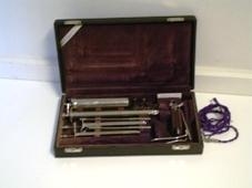 kassanum eru eyrnasjá, endaþarmsskoðari og hólkur með rafhlöðum í sem tengja