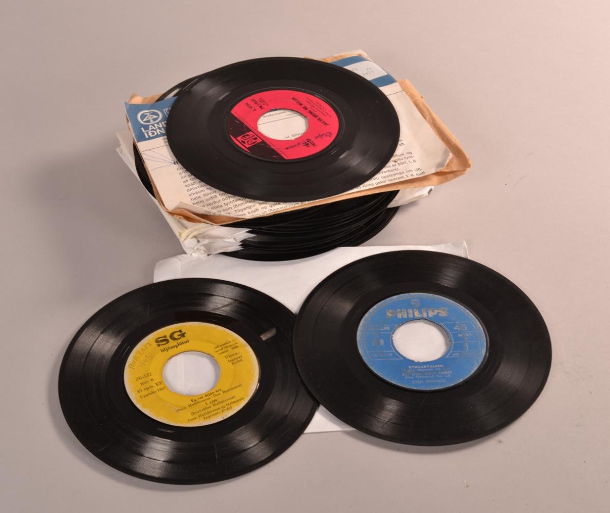 45 sn hljómplötur með ýmsum íslenskum og erlendum flytjendum