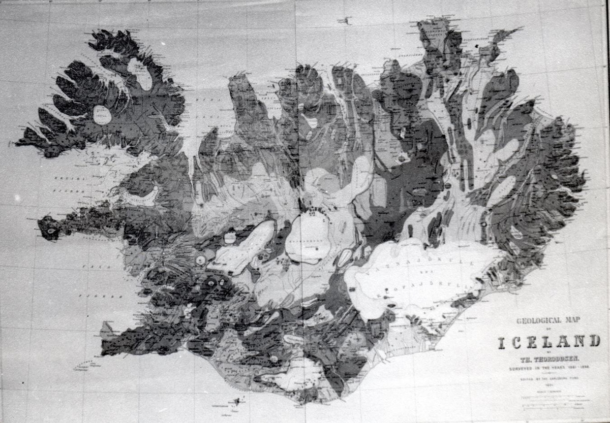 Litprentað jarðfræðikort af Íslandi, er í tveimur pörtum. Geological map of Iceland. By Th. Thoroddsen. Surveyed in the years 1881-1898. Edited in Carlsberg Fund 1901