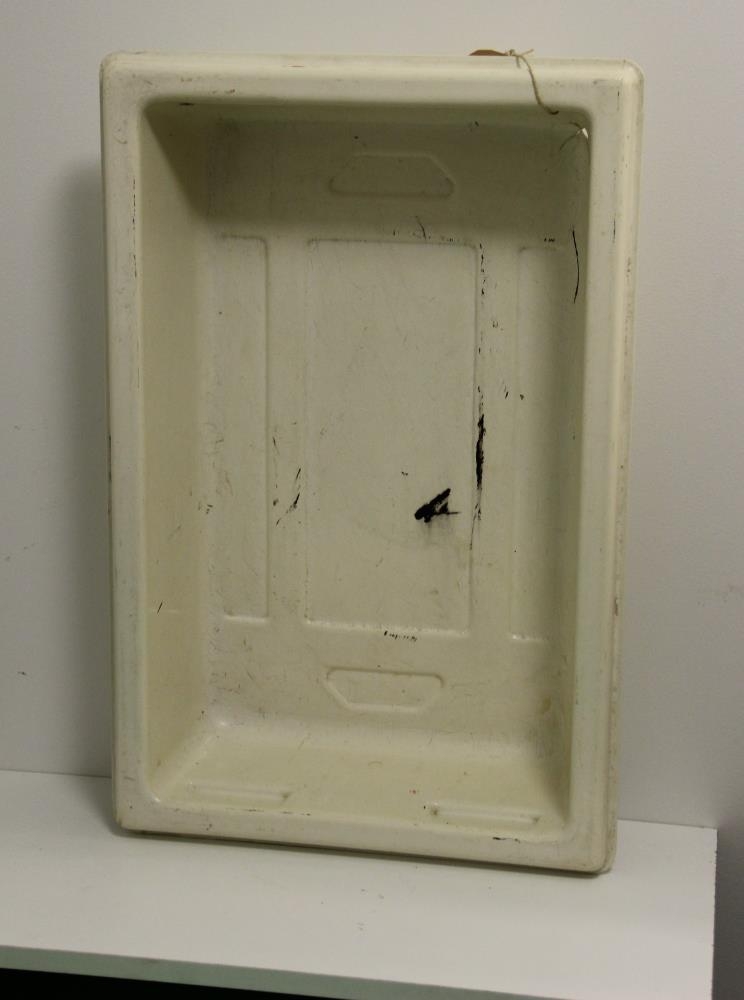 Hluturinn er hvítur kassi/bakki fyrir matvælaframleiðslu. Ekki er vitað frekar um sögu kassans.
