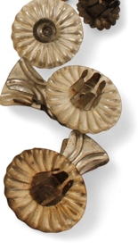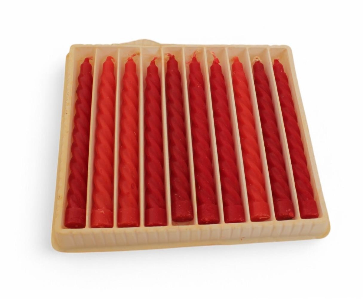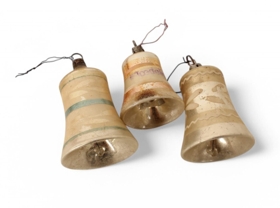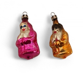 Jólaskraut á jólatré. Fylgdi jólatré ÁBS 2017-66-2. Rauð snúin kerti, kertaklemmur, fánar, þrjár bjöllur og tvær kúlur eins og jólasveinar.