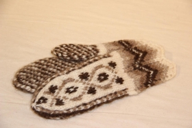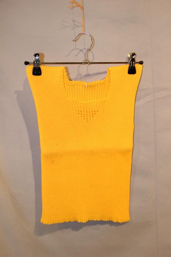 Þetta eru 7 bolir/peysur í ýmsum litum ásamt 2 húfum og þrennum vettlingum. Einnig eitt par kvenlopavettlingar. Allt er þetta handprjónað úr ýmsum tegundum Gefjunarbands: Grilon-loðbands, eingirni Grilon-merino, S-kambgarn, golfgarn, plötulopi. Sumt sækir munstrið í meðfylgjandi bók Gefjunar „ELIN“. Þetta er allt úr fjölskyldu Ingibjarnar Tryggvadóttur og gefur góða innsýn um nýtingu einnar fjölskyldu á fjölbreyttri bandframleiðslu Gefjunar á Akureyri. Samtals 13 sýnishorn. Stærð: Ýmsar barnastærðir.