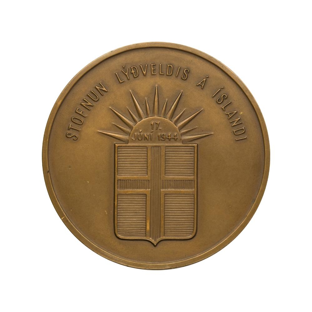 Þessi minnispeningur var gefinn út af þjóðhátíðarnefndinni fyrir lýðveldishátíðina árið 1944. Peningurinn var sleginn í 2000 eintökum í Svíþjóð og hannaður af Stefáni Jónssyni.