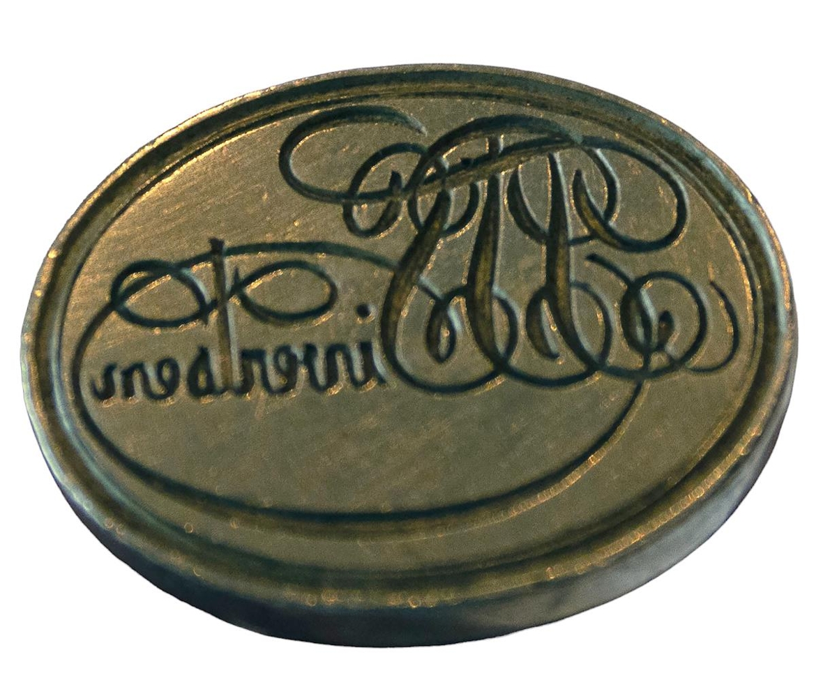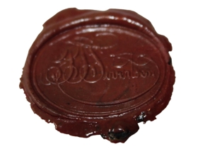 Signet sem í er greypt :T.P..Sívertsen. Signet þettta átti Torfi Sívertsen,Pétursson bóndi í Höfn í Melasveit.