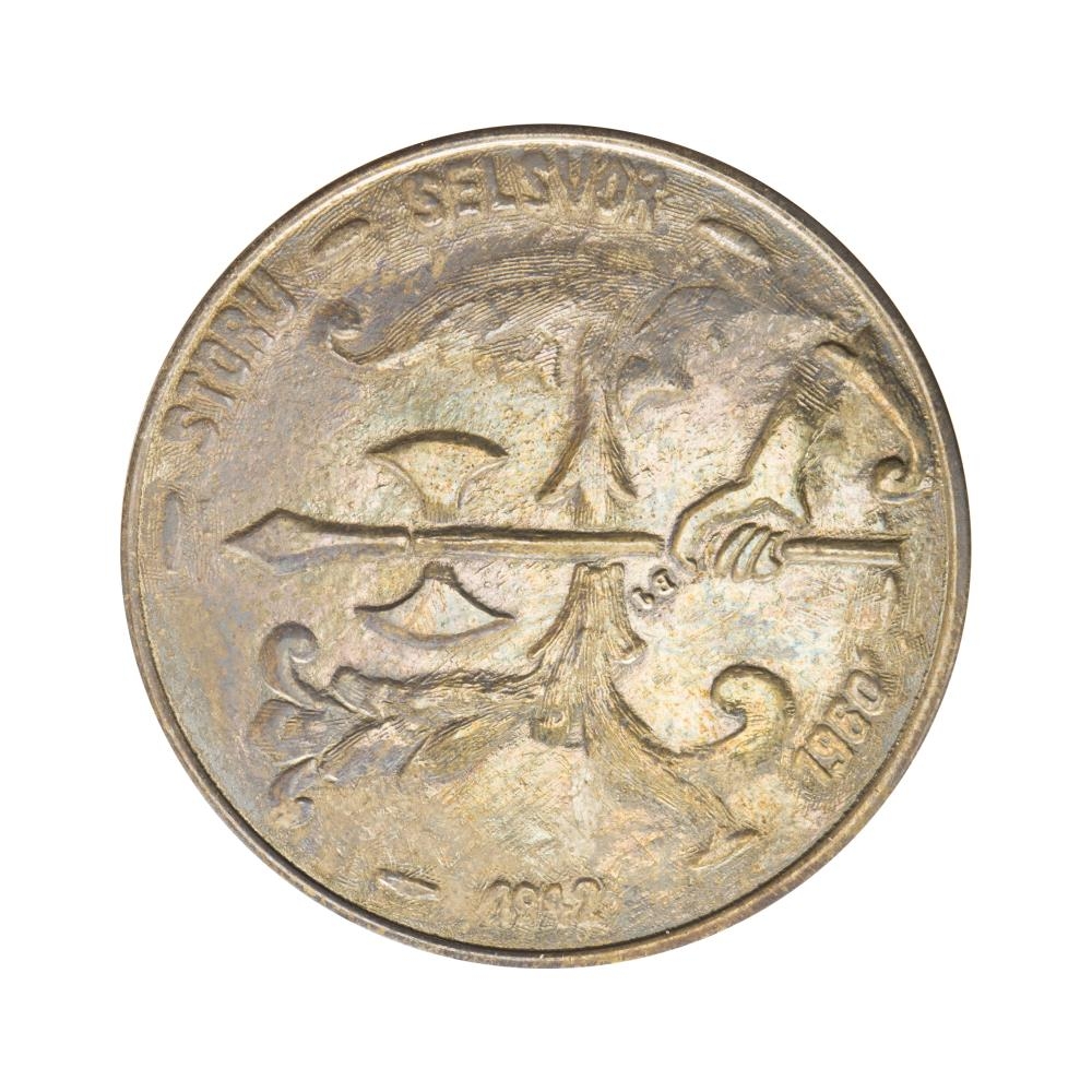 Þessi minnispeningur var búin til af Pétri Hoffmann Salómonssyni (25. febrúar 1897 – 18. október 1980) til minningar um 18 ára veru hans í Stóru- selsvör þar sem Pétur bjó. Einnig nefnir Pétur í viðtali að hann hafi slegið þessa peninga til að vegsama sjálfan sig fyrir afreksverk sín á Öskuhaugunum.