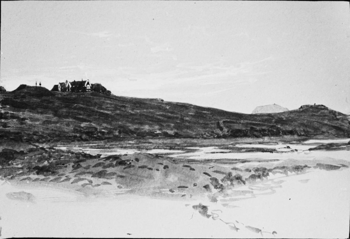 Hofsstaðir í Mývatnssveit - eftir vatnslitamynd Collingwoods.