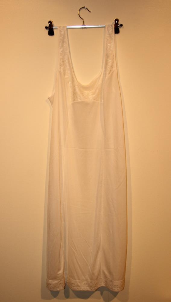 Hvítur náttkjóll með blúndu. Texti á plastpoka: Íris S/F, Akureyri.