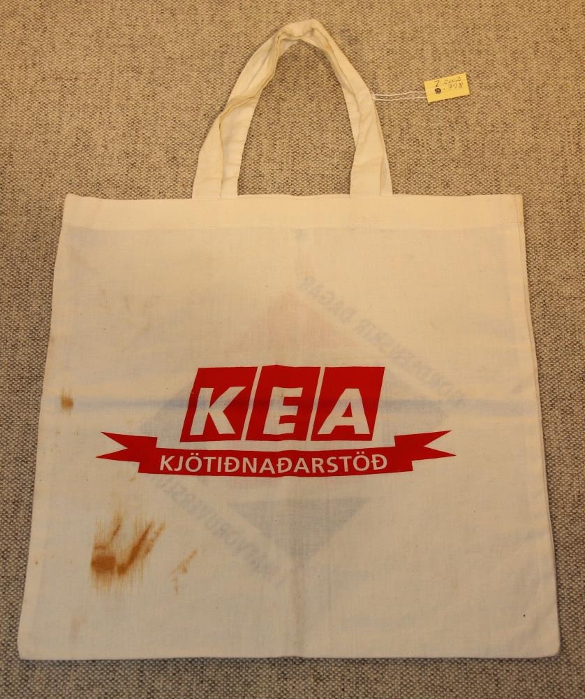 Innkaupapoki með hvítum höldum. Áletrun: KEA Kjötiðnaðarstöð - Norðlenskir dagar í matvöruverslun KEA.