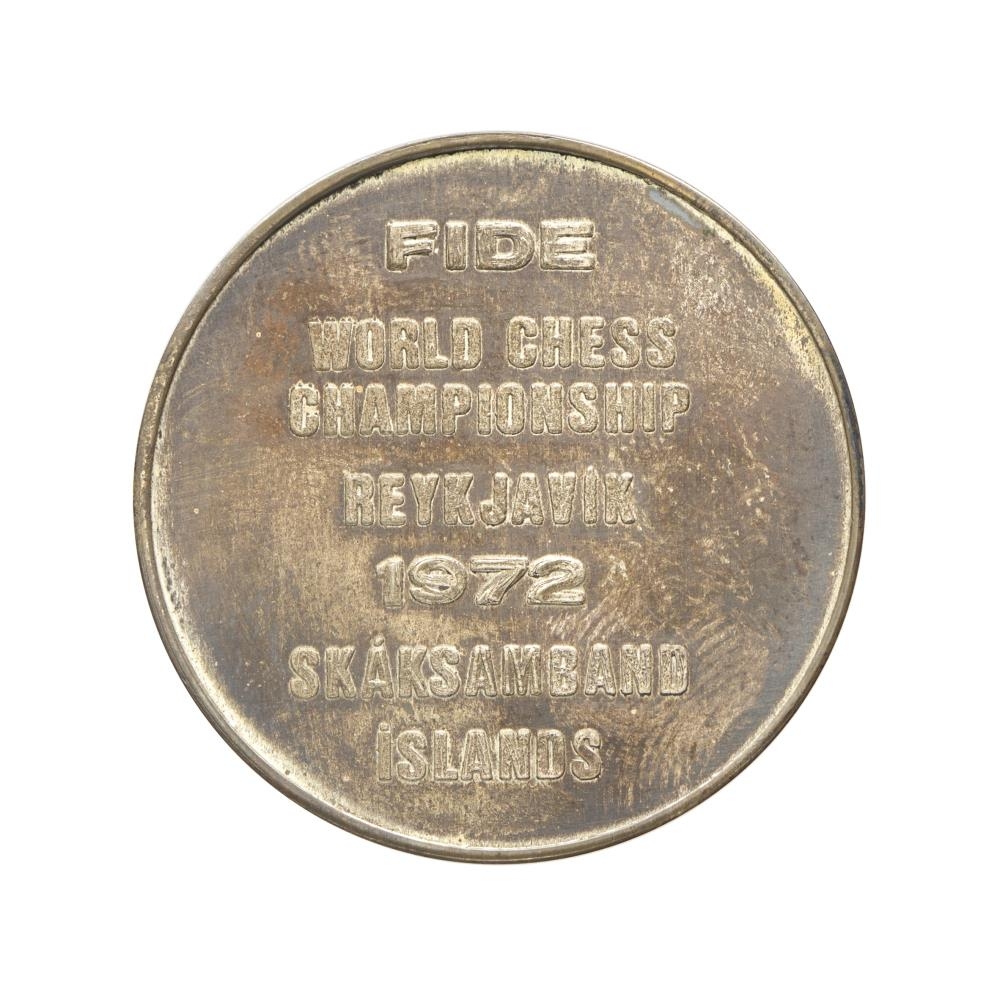 Þessi minnispeningur var búinn til af Skáksambandi Íslands fyrir Heimsmeistarakeppnina í skák sem halding var á Íslandi árið 1972. Þessi peningur tilheyrir annari útgáfu af þeim peningum sem Skáksambandið bjó til fyrir keppnina.