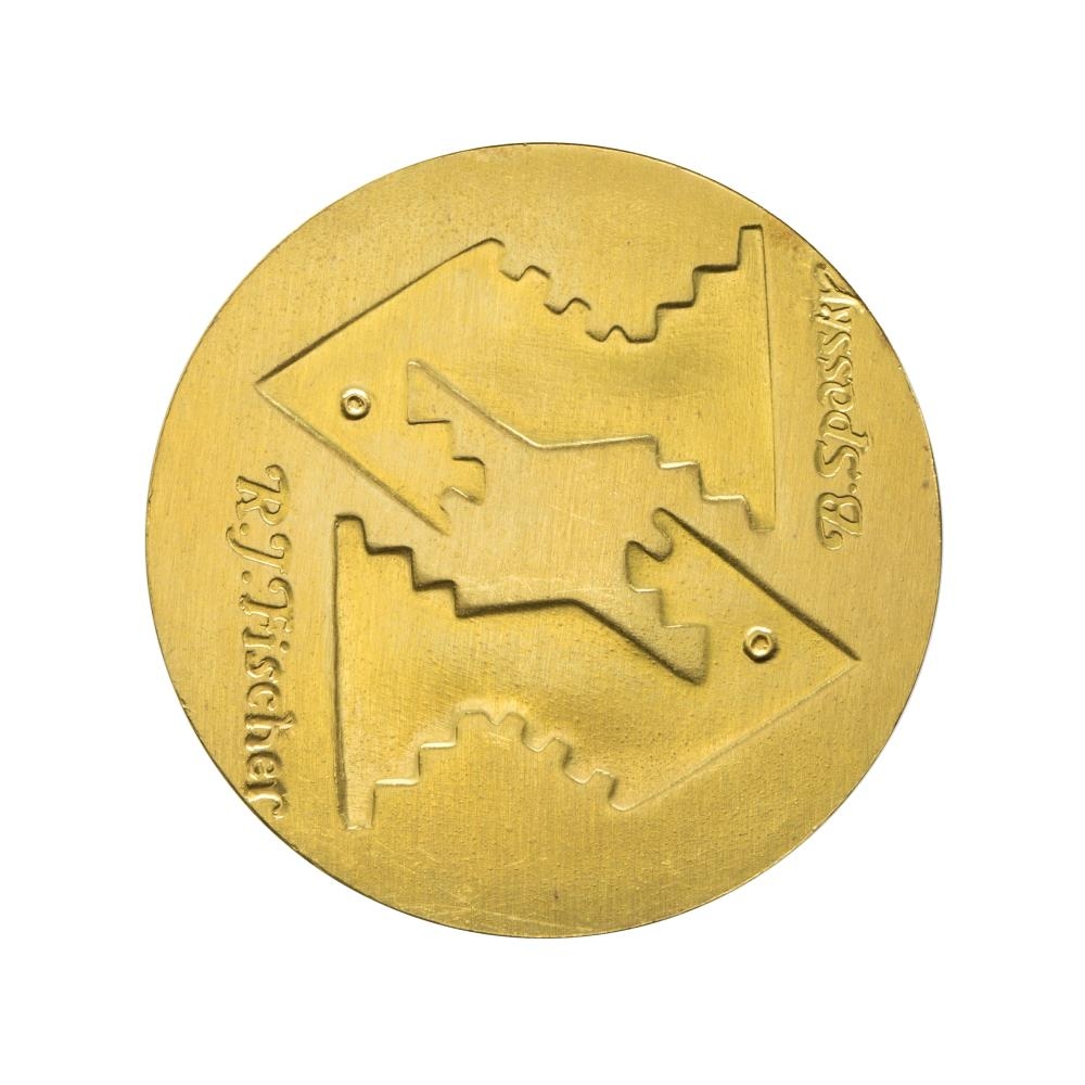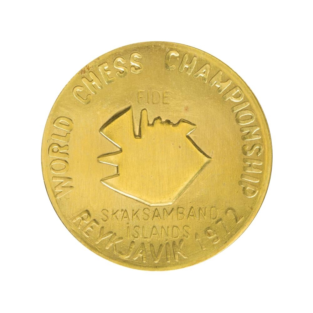 Þessi minnispeningur var búinn til af Skáksambandi Íslands fyrir Heimsmeistarakeppnina í skák sem halding var á Íslandi árið 1972. Þessi peningur tilheyrir fyrstu útgáfu af þeim peningum sem Skáksambandið bjó til fyrir keppnina.