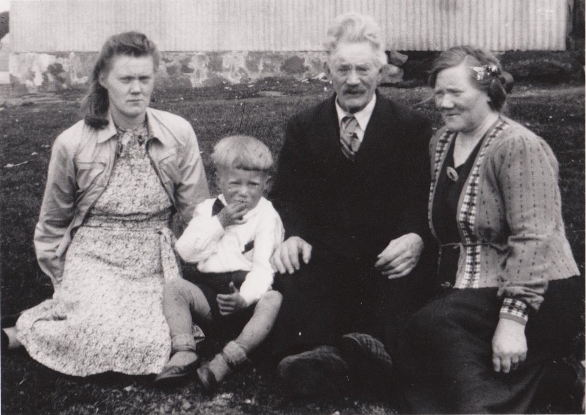 Fjórir ættliðir frá Einari á Hróðarnýjarstöðum. Ingiríður Guðmundsdóttir (1917-2002), Steinn Eyjólfsson (1939), Einar Þorkelsson (1858-1958) og Sigríður Einarsdóttir (1892-1982).