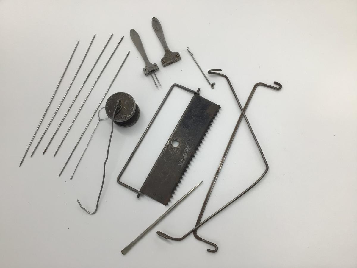 tengdir prónavélinni, s.s. saumavélaolía, olíukönnur, lóð.
