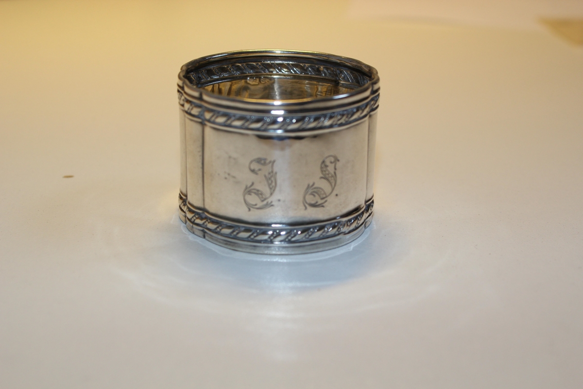 Hringlaga servíettuhringur úr silfri, munsturbekkur að ofan og neðan. Á hringin eru grafnir stafirnir " IS " sem gæti átt við gefanda sem var Ingibjörg Sigurjónsdóttir. Það er þó óvíst miðað við það sem skrifað er í athugasemdir hér fyrir neðan.
