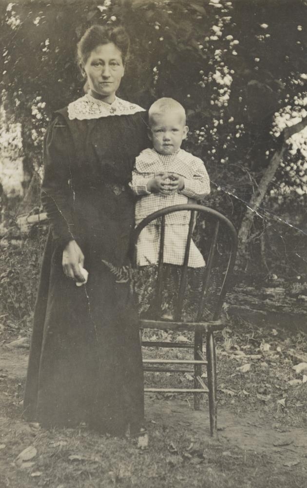Sigríður Einarsdóttir frá Norður-Hvoli ásamt ungum dreng. Sigríður flutti til Vesturheims og myndin er tekin þar.