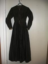 Altarisgöngukjóll úr bómullarsatíni. Það hefur verið svart í upphafi en er nú talsvert upplitað. Kjóllinn er allur handsaumaður. Hann er tekin í sundur í mittið. Pilsið er mikið felt. Það er fóðrað með 10 cm. breiðu bómullarefni að neðan. Pilsið er talsvert rifið og hefur verið bætt á einum stað að neðan. Peysufatasnið er á treyjunni og hún er fóðruð með bómullarefni. Bómullarefnið sem notað var í fóður hefur verið svart en er nú talsvert upplitað. Treyjan er hneppt að framan með 9 tölum , en 1 vantar. Tölurnar eru 1,5 cm. í þvermál með blárri glerkúlu í miðjunni. Þær eru úr málmi. Ekki eru hnappagöt heldur krækjur þannig að tölurnar því trúlega til skrauts. Hvítt efni, eins konar líning hefur verið þrædd framan á ermar og í hálsmál þegar hún vildi nota kjólinn við fínni tækifæri og þessar líningar eru nú á kjólnum. Hvíta efnið í hálsmálinu er laust frá að mestu. Ermalend frá herðasaum er 60,5 cm. Lengd frá hálsmáli að aftan og niður eru 137 cm. og frá hálsmáli og að mittissaum eru 40 cm. Ummál mittissaums er 62 cm. og kjólsins að neðan er 330 cm. Kjóll þessi var eign Steinunnar Sigurðardóttur sem var fædd í Sælu í Skíðadal 27. nóvember 1844. Hún var dóttir hjónanna Sigurðar Jónssonar bónda á Syðri-Másstöðum og Soffíu Benjamínsdóttur. Steinunn var 31 árs þegar hún gekk að eiga Sigurjón Jónsson frá Selárbakka. Þau hófu fyrst búskap á hluta Syðri-Másstaða og síðar á Uppsalakoti. Þau Sigurjón og Steinunn voru barnlaus. Árið 1915 andaðist Sigurjón og flutti þá Steinunn niður á Dalvík árið 1916. Hún fékk inni hjá sæmdarhjónunum Elínu Tómasdóttur og Angantýr Arngrímssyni í Sandgerði. Þar dvaldi hún til æviloka en hún lést 7. febrúar 1922 í Sandgerði. Meðan að heilsa Steinunnar leyfði stundaði hún fiskvinnu við vöskun og þurrkun. Lengst af vann hún hjá Sigurði P. Jónssyni kaupmanni og útgerðarmanni. Skömmu fyrir andlát sitt útdeildi hún sínum veraldlegu eignum og sennilega hafa velgerðarhjón hennar og húsráðendur í Sandgerði fengið eitthvað meðal annars þennan kjól. Eftirfarandi eru orð vinnuveitanda Steinunnar, Sigurðar P. Jónssonar ,,Mesta gleði af peningum hlotnaðist mér með óvæntum hætti og án þess að ég hafi til þeirra unnið á nokkurn hátt. Þessir peningar voru arfur, eini arfurinn frá vandalausum sem mér hefur borist. Þetta voru 80 silfurkrónur sem gömul kona Steinunn Sigurðardóttir frá Uppsalakoti ánafnaði mér í banalegu sinni. Hún bað þá um að mér yrðu afhentar þessar krónur því hvergi vildi hún vita af þeim annars staðar en hjá mér , honum Sigga Jóns,eins og ég var löngum kallaður. Steinunn hafði unnið hjá mér í mörg sumur."