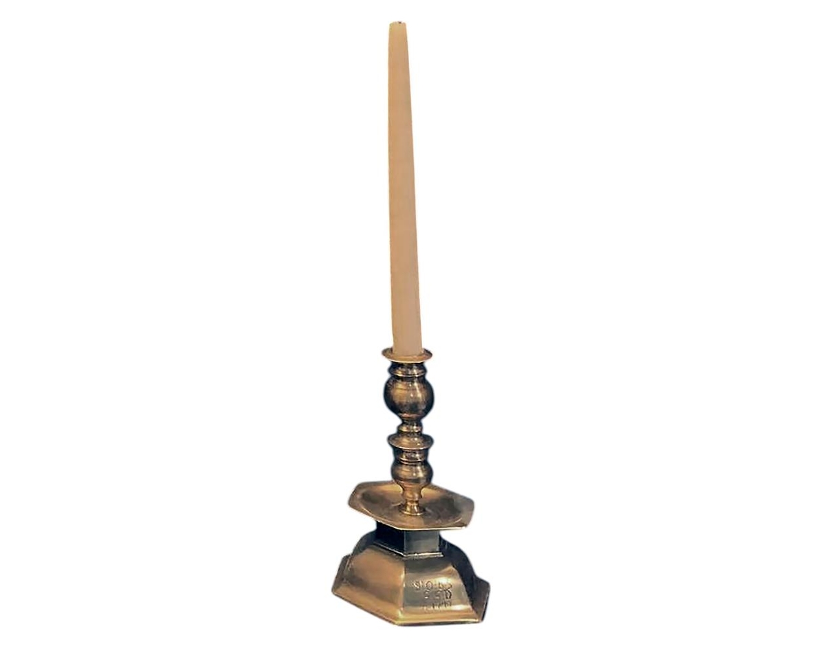 Tveir kertastjakar úr Garðakirkju .Áletrun : Sr.O.B.S.-G.G.D. -A° 1749.