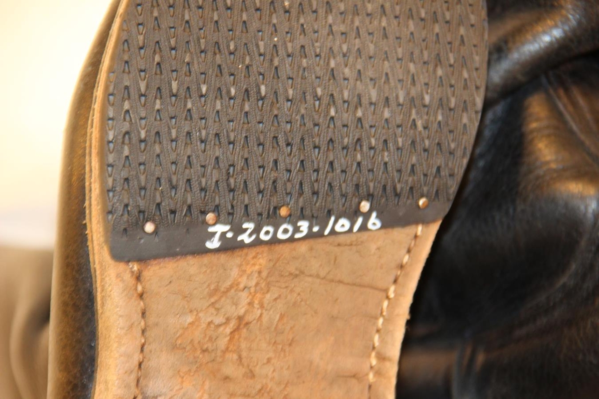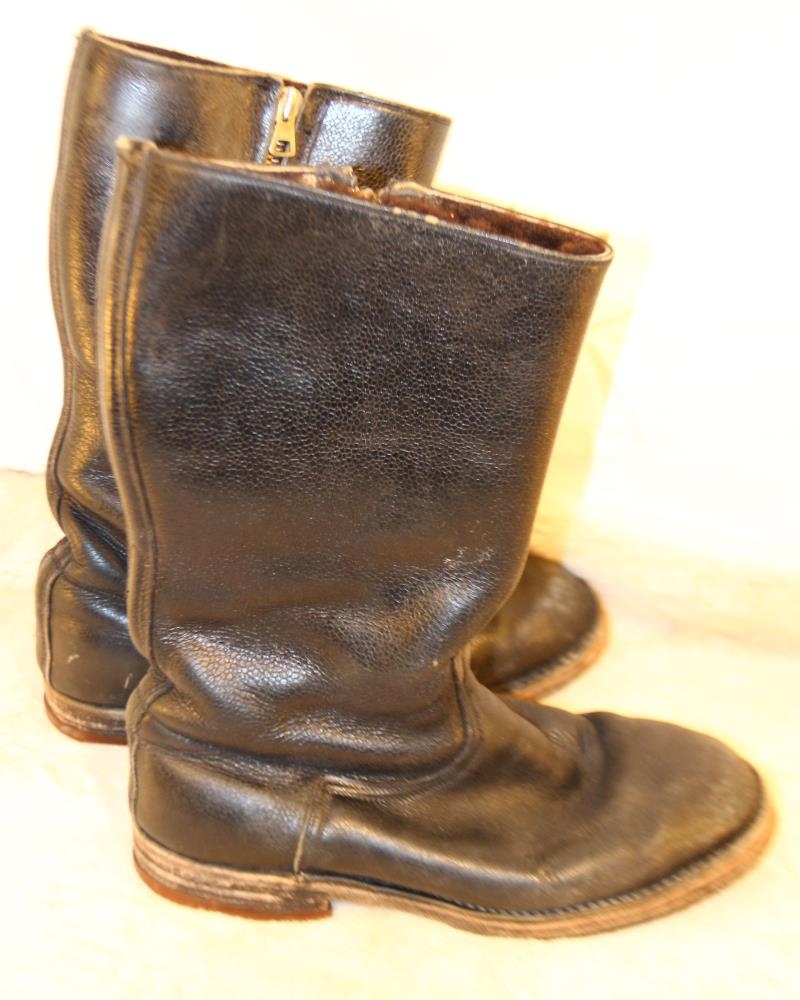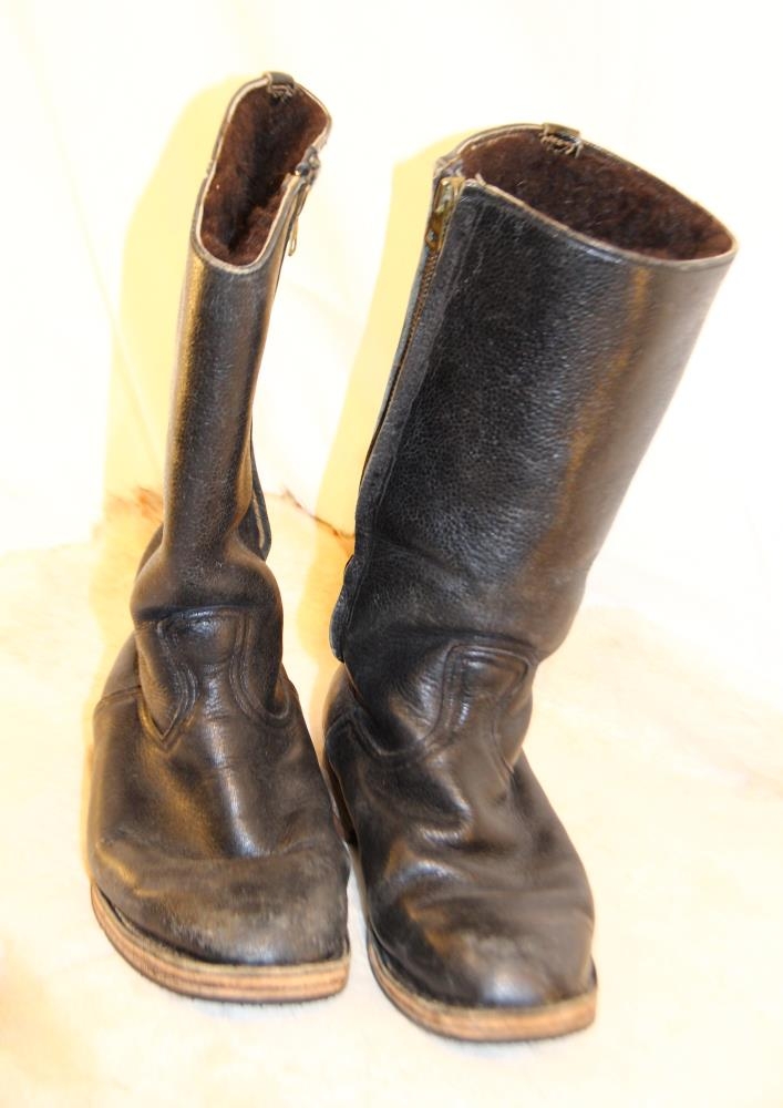 Stígvélin eru úr leðri, svört að lit. Þau eru 34 cm. á hæð og fóðruð með brúnni lambsgæru. Botninn er líka úr leðri, sólaður með gerviefnum og rennilás er á hlið. Pétur Bj. Jónsson var einn af fyrstu starfsmönnum Skóverksmiðjunnar Iðunnar og náði háum starfsaldri. Hann var skósmiður að mennt. Þessi stígvél handsmíðaði hann handa syni sínum, Jóni Pétri, sem var um langt árabil skipstjóri á togurum Útgerðarfélags Akureyringa. Stærð: 42.