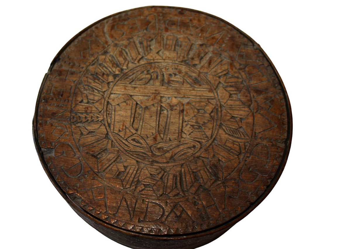 Saumaöskju þessa átti Arnbjörg Erlendsdóttir (frá Bekanstöðum ? ). Síðan átti öskjuna dóttir hennar Guðrún Jónsdóttir ,húsfreyja á Traðabakka á Akranesi, þá sonardóttir hennar Steinbjörg (f.1884) en hún gaf safninu öskjuna.