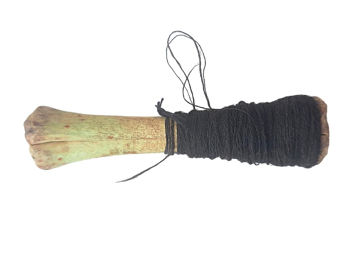 Hnappagataþráður,þrinnaður á lambslegg.Unninn