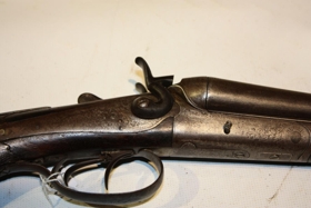 Þessa byssu átti fyrst Jón Vídalín konúll (f.1857). Hann bjó í Reykjavík lengst af, um skeið var hann auðugur maður og rausnarmaður mikill. Hann safnaði forngripum og gaf síðar Þjóðminjasafni Íslands safn sitt . Er það í sérstakri deild í Þjóðminjasafninu ,er ber nafn hans. Jón Vídalín gerðist forstjóri fyrir togaraútgerðafélag á Akranesi sem stofnað var 1899 og gerði út 6 togara (Akranes ,Dalanes, Engines, Fiskines ,Grímsnes og Brimnes) .Mánaðarkaup háseta var 45 kr., en útgerð þessi stóð ekki lengi . Á þessum tíma ,um eða rétt fyrir aldamót skipti Jón á þessari byssu og reiðhesti ,miklum gæðingi ,milligjafarlaust, við Pétur Kristófersson (óðalsbónda á Stóruborg í Víðidal f.1840) í Háuhjáleigu í Innri-Akraneshreppi. Átti Pétur byssuna eftir það meðan hann lifði (d.1906). Þótti hún góður gripur. Kristófer sonur Pétur og silfursmiður á Kúludalsá í Innri-Akraneshr. eignaðist byssuna eftir föður sinn og gaf hana safninu 1958