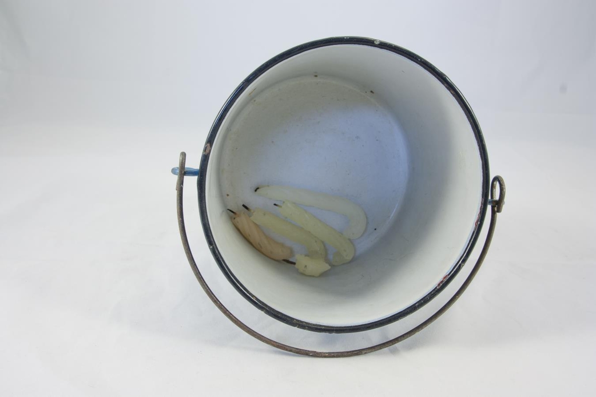 Mjólkurfata ,lítil emanleruð blá að utan og hvít að innan. Er úr búi hjónanna í Hlíð Sveins Eiríkssonar járnsmiðs f.1857 og Sigurbjargar Sigurðardóttur .Sigurbjörn sonur þeirra eignaðist fötuna og gaf safninu 1977.Hæð 12,5 x 15 sm